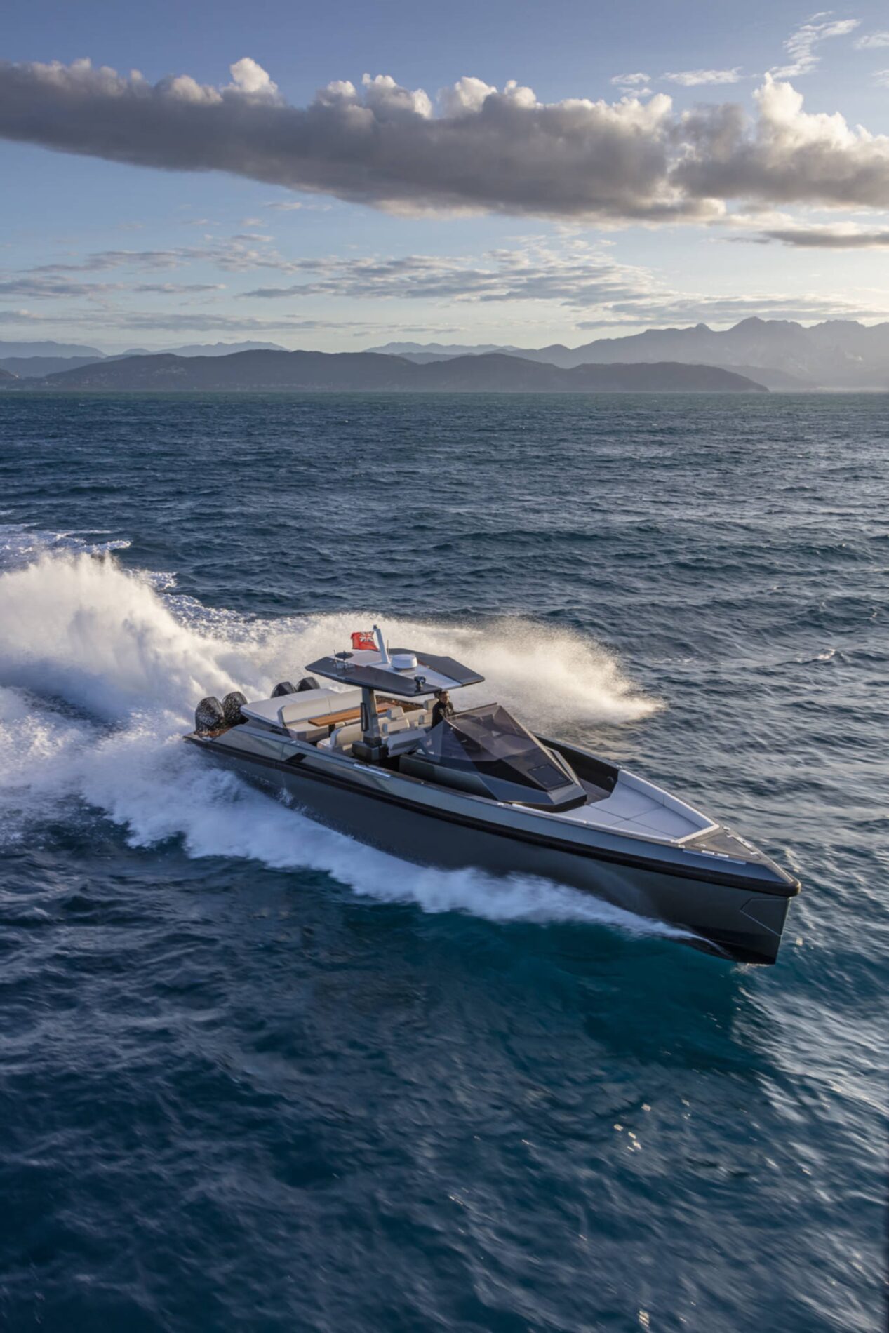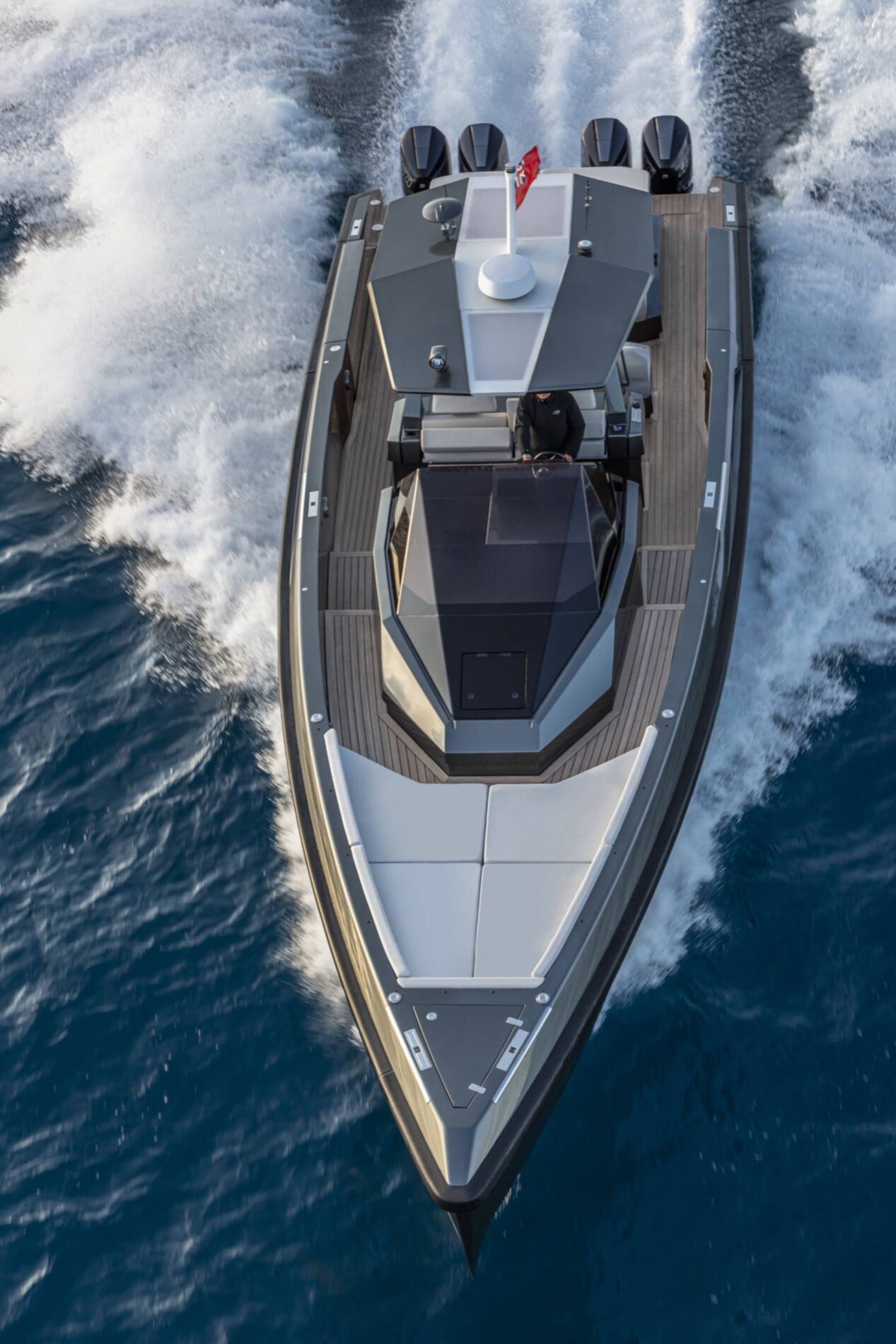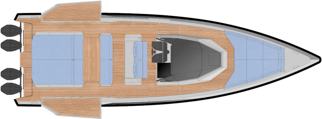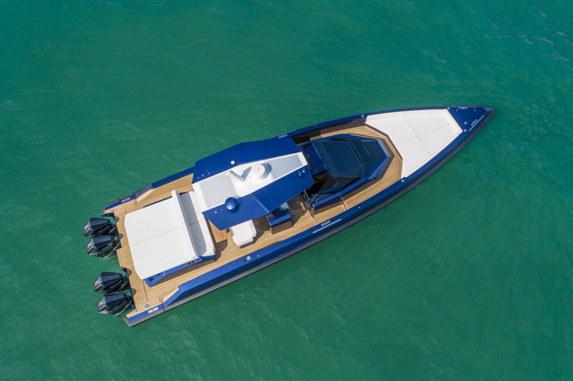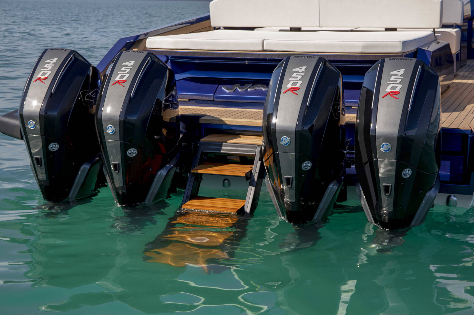 Our outboard version of the impressive wallytender48 is perfect for those who want high speeds allied to low draft and manoeuvrability. Its elegant stern platform is designed to support up to 4 x Mercury Verado V8 450R racing engines for a truly thrilling driving experience.
