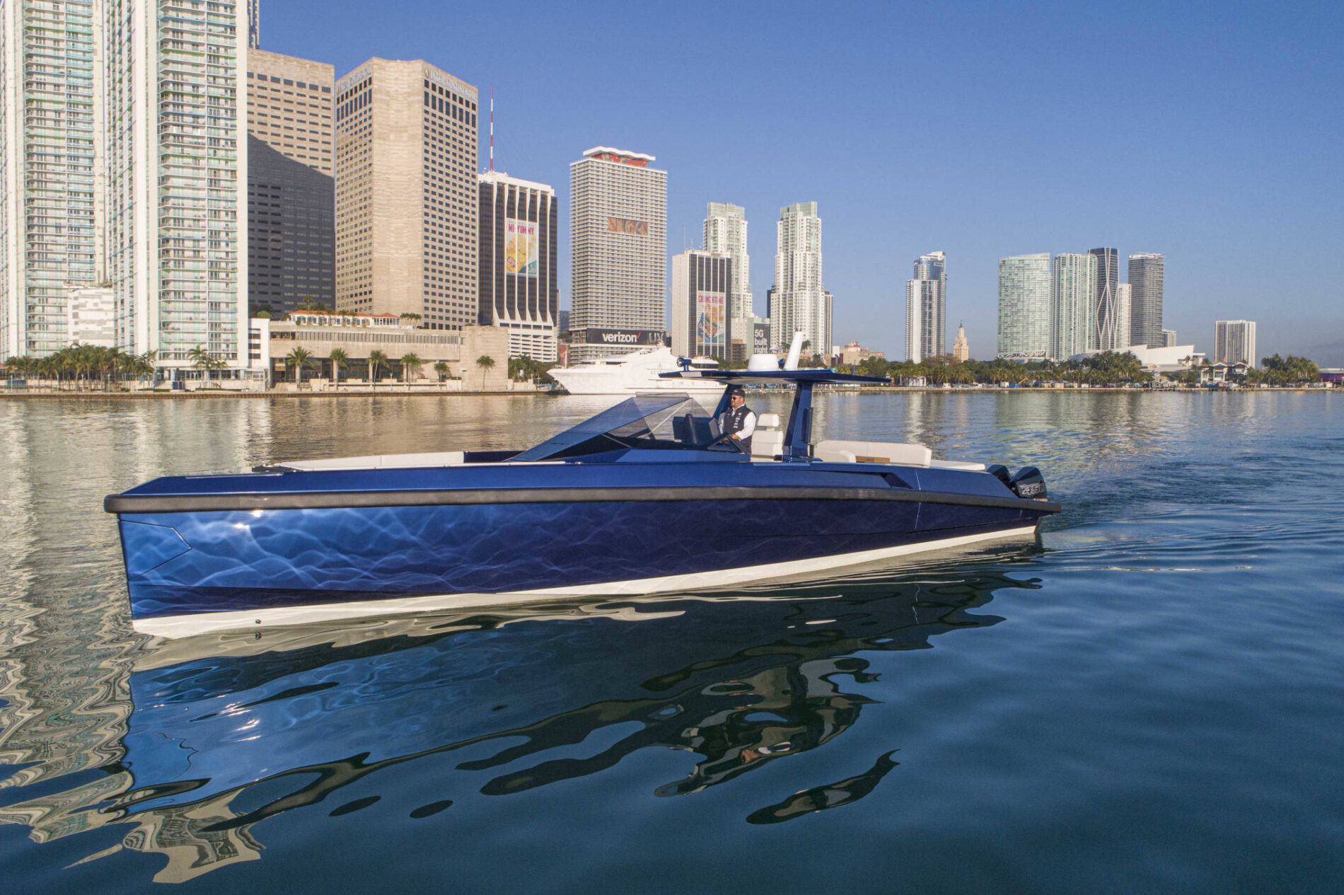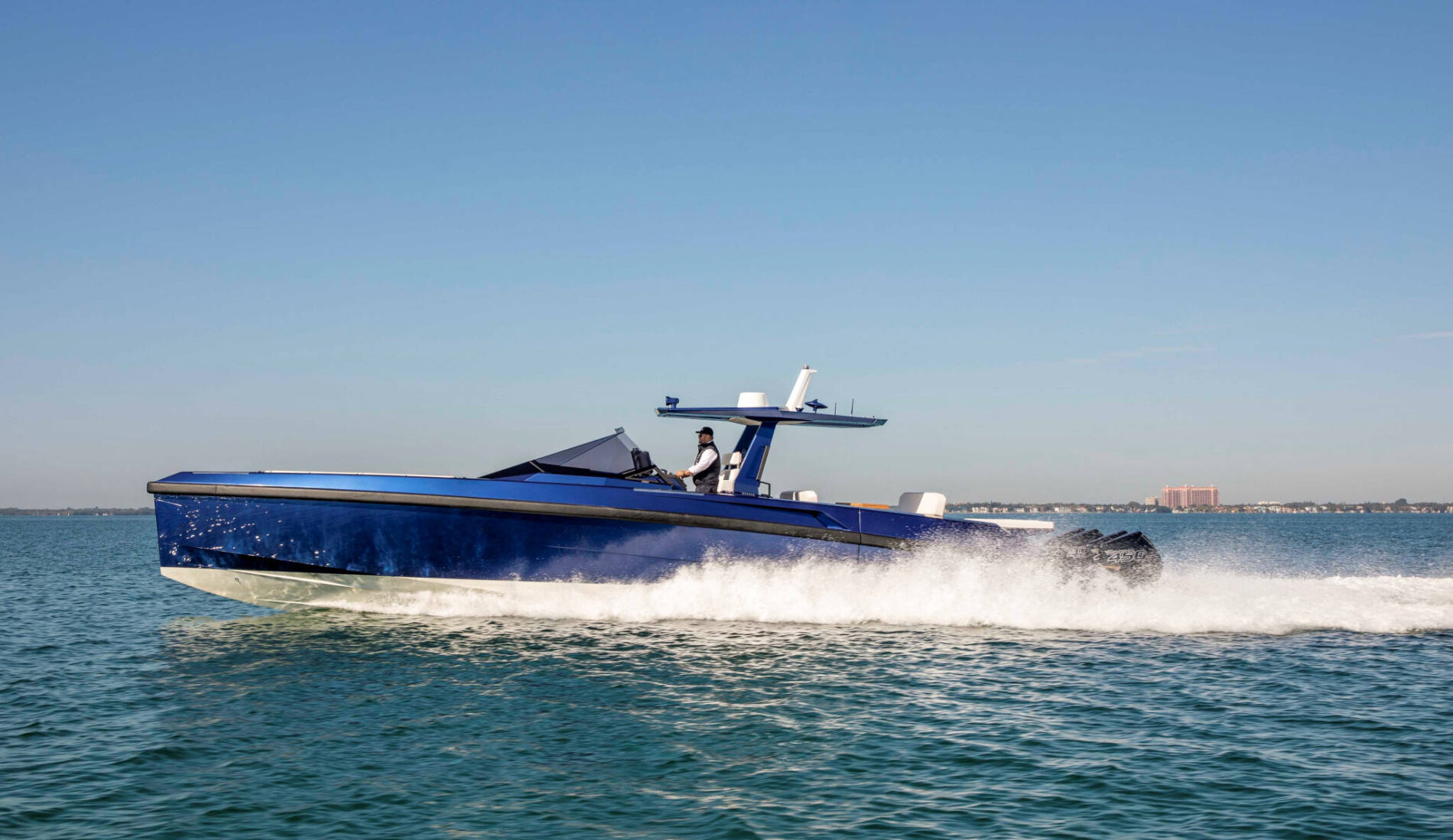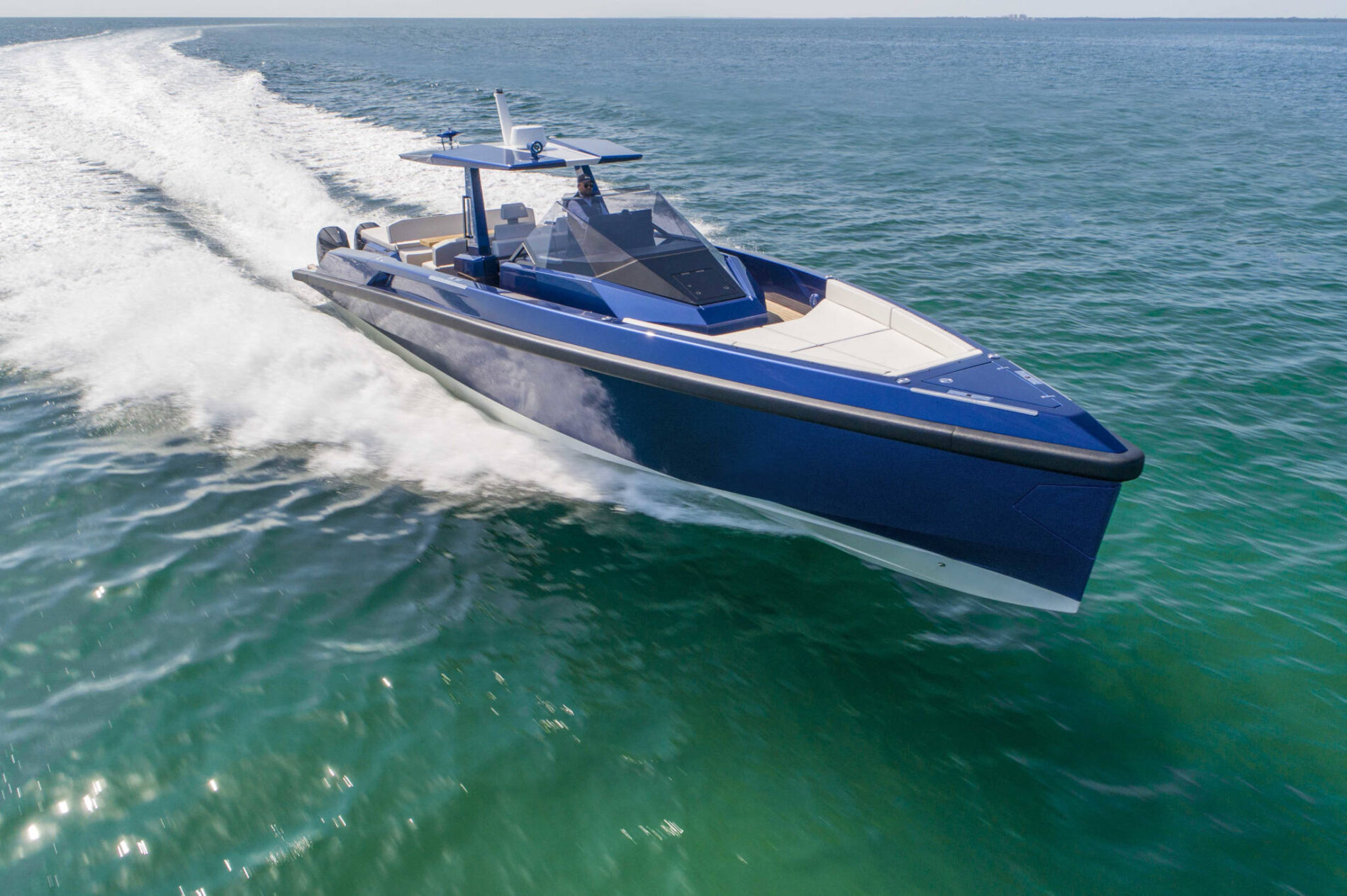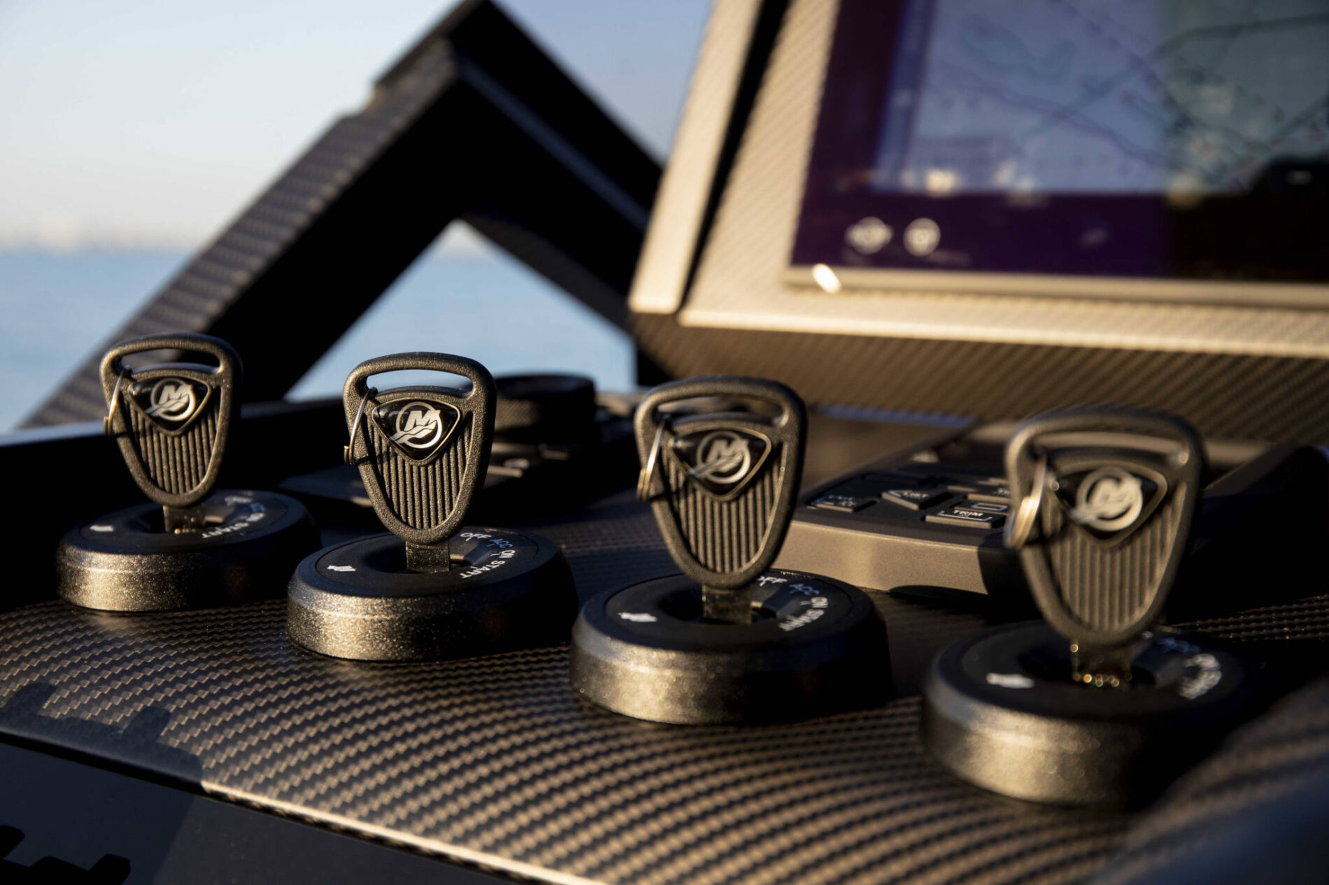 Our outboard version of the impressive wallytender48 is perfect for those who want high speeds allied to low draft and manoeuvrability. Its elegant stern platform is designed to support up to 4 x Mercury Verado V8 450R racing engines for a truly thrilling driving experience.