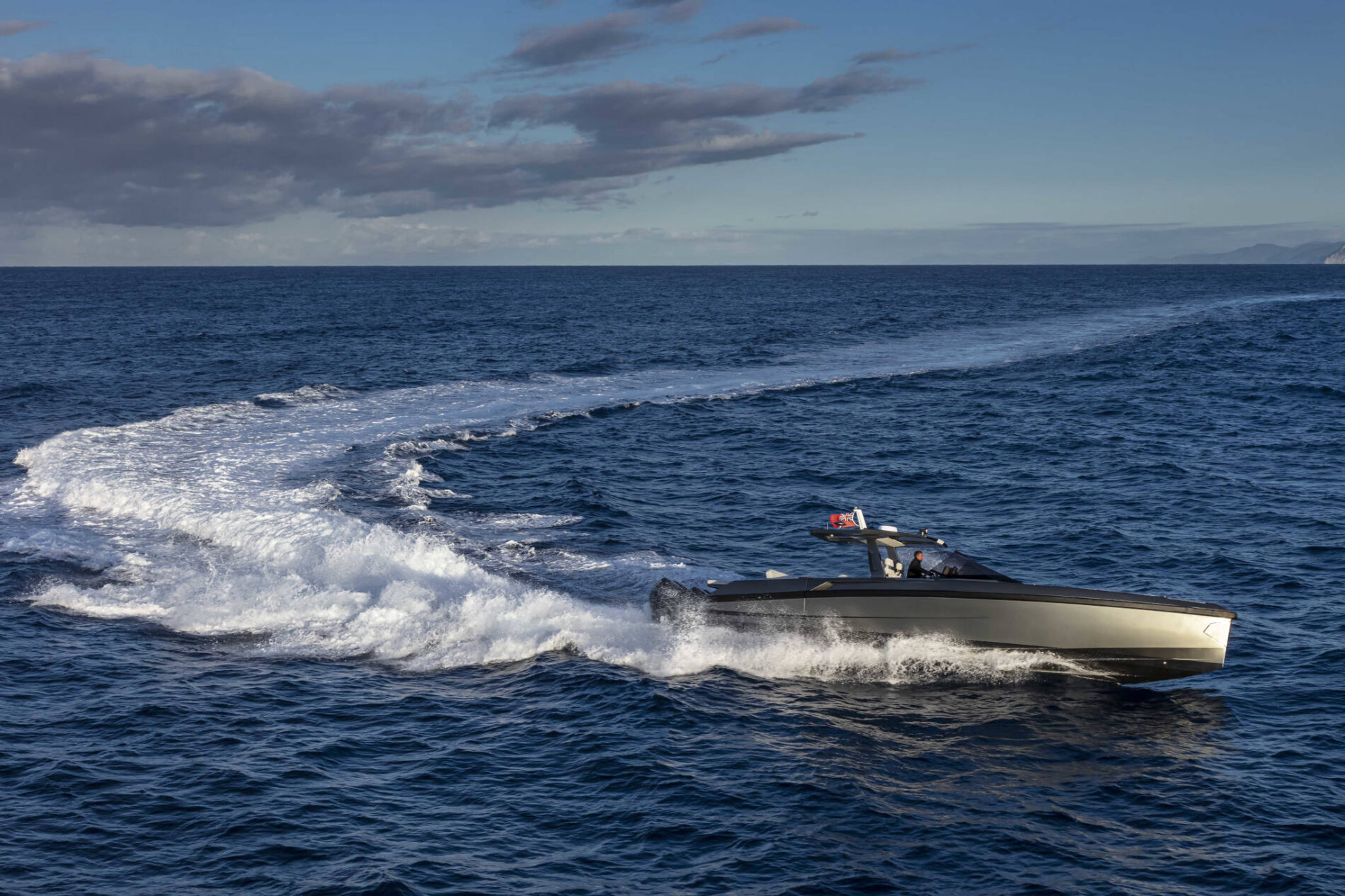 With this set-up, the wallytender48X can reach top speeds of 55 knots, or cruise for 320 nautical miles at a still-rapid 40 knots. A deep-V hull provides optimum stability and comfort offshore, and makes it a pleasure to blast from Miami to the Bahamas, or Monaco to Porto Cervo. What’s more, the outboards tilt up to reduce draft to a scanty 70cm (2ft 4in) for shallow waters.