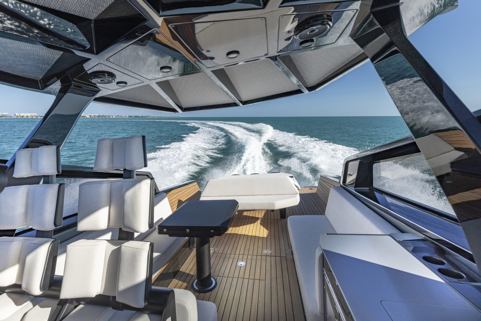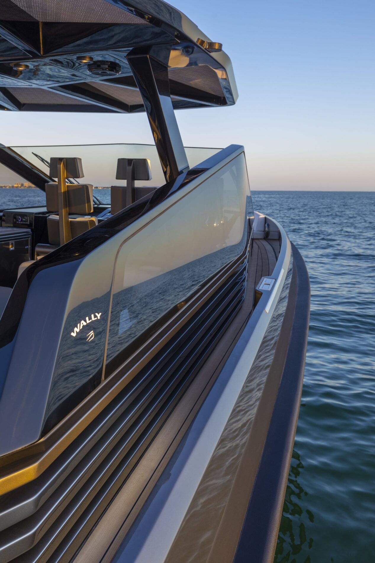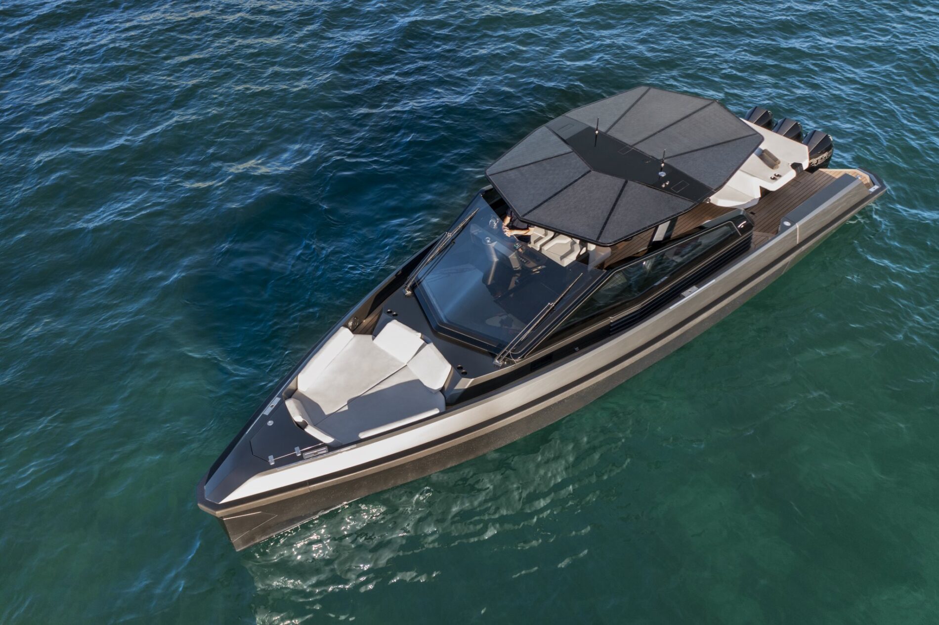 Flexibility is another defining trait of the wallytender43X, which converts easily between a family day boat, superyacht tender or resort shuttle. The innovative centre cockpit offers optimum protection for guests and the convenience of a walkaround. Enjoy the freedom of the upholstered foredeck sunlounge, or seek the shade of Wally’s striking sailcloth hard-top.