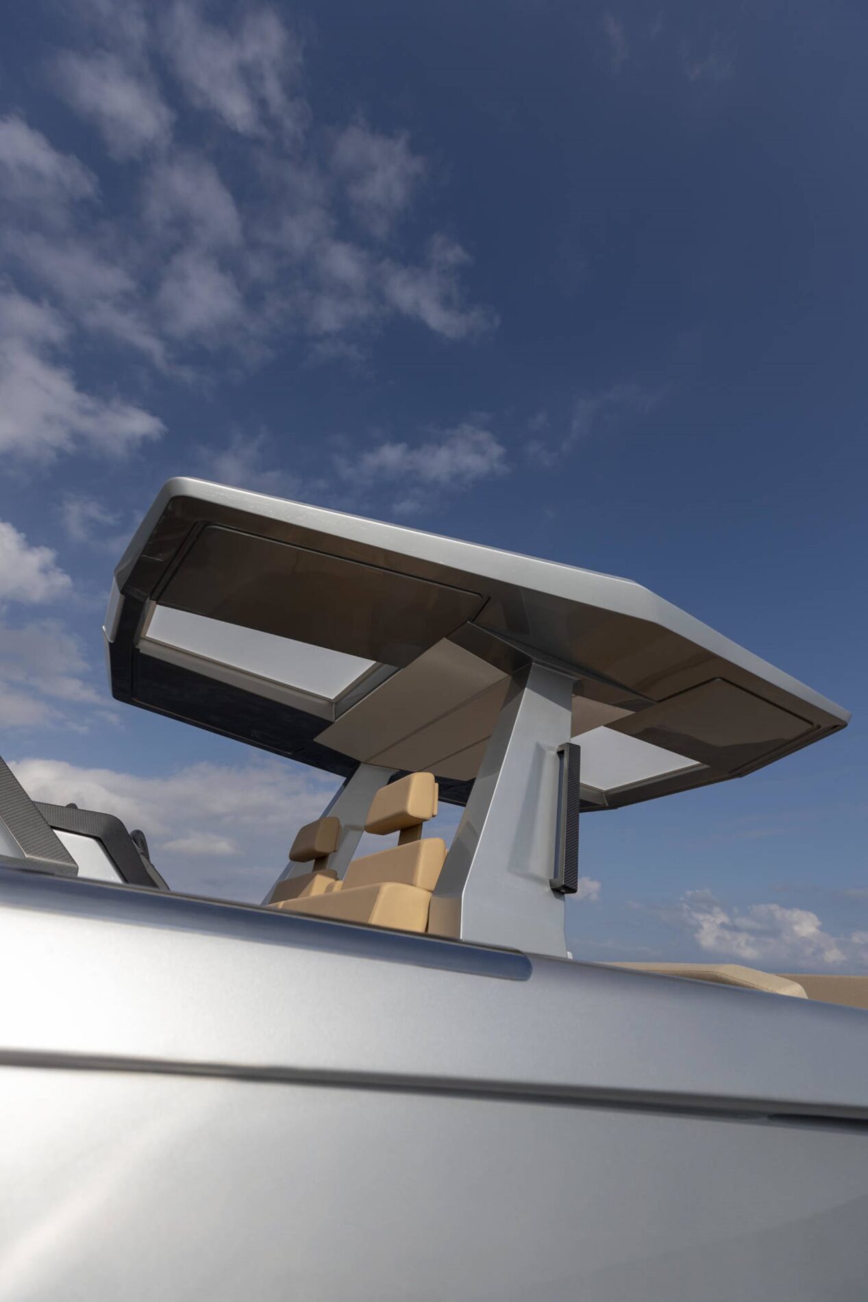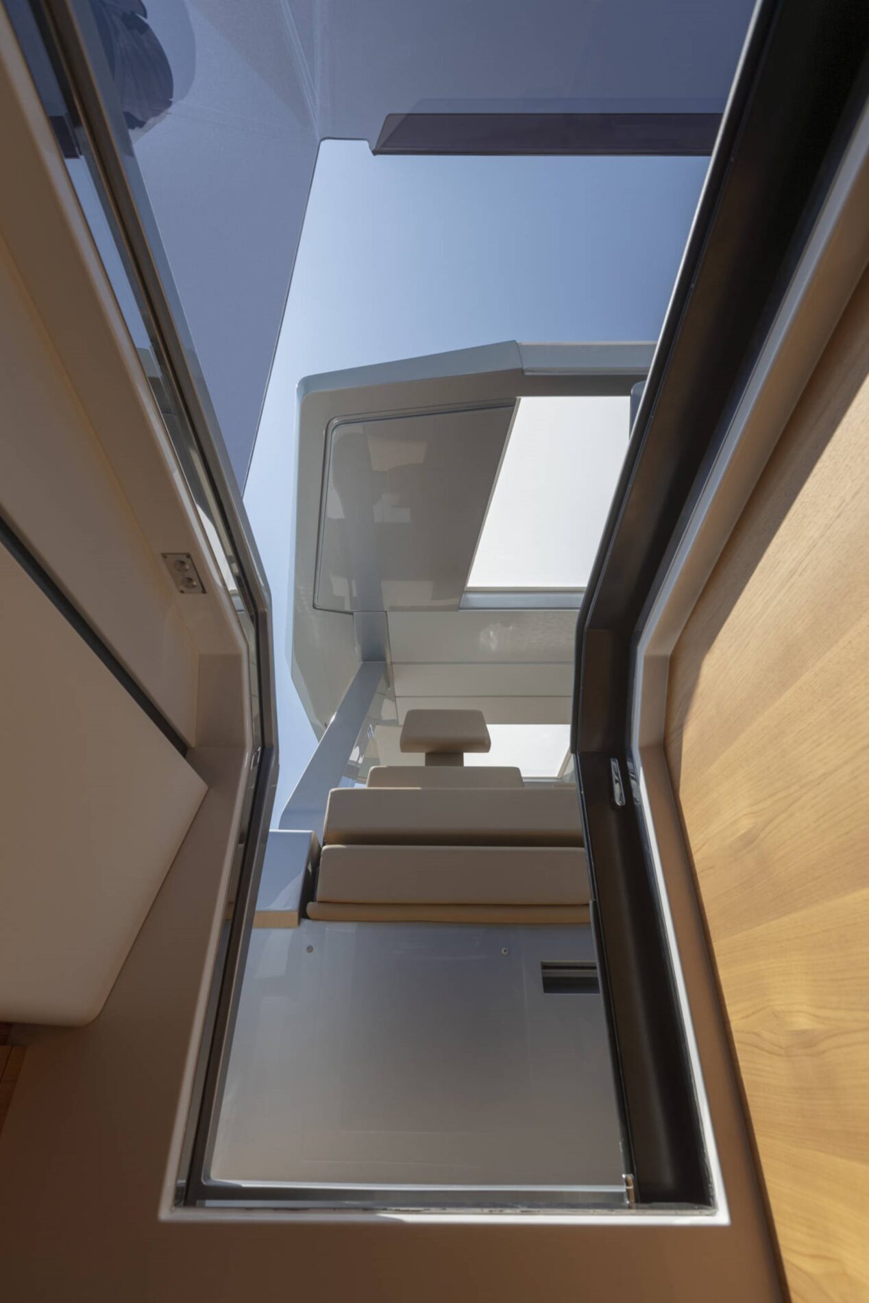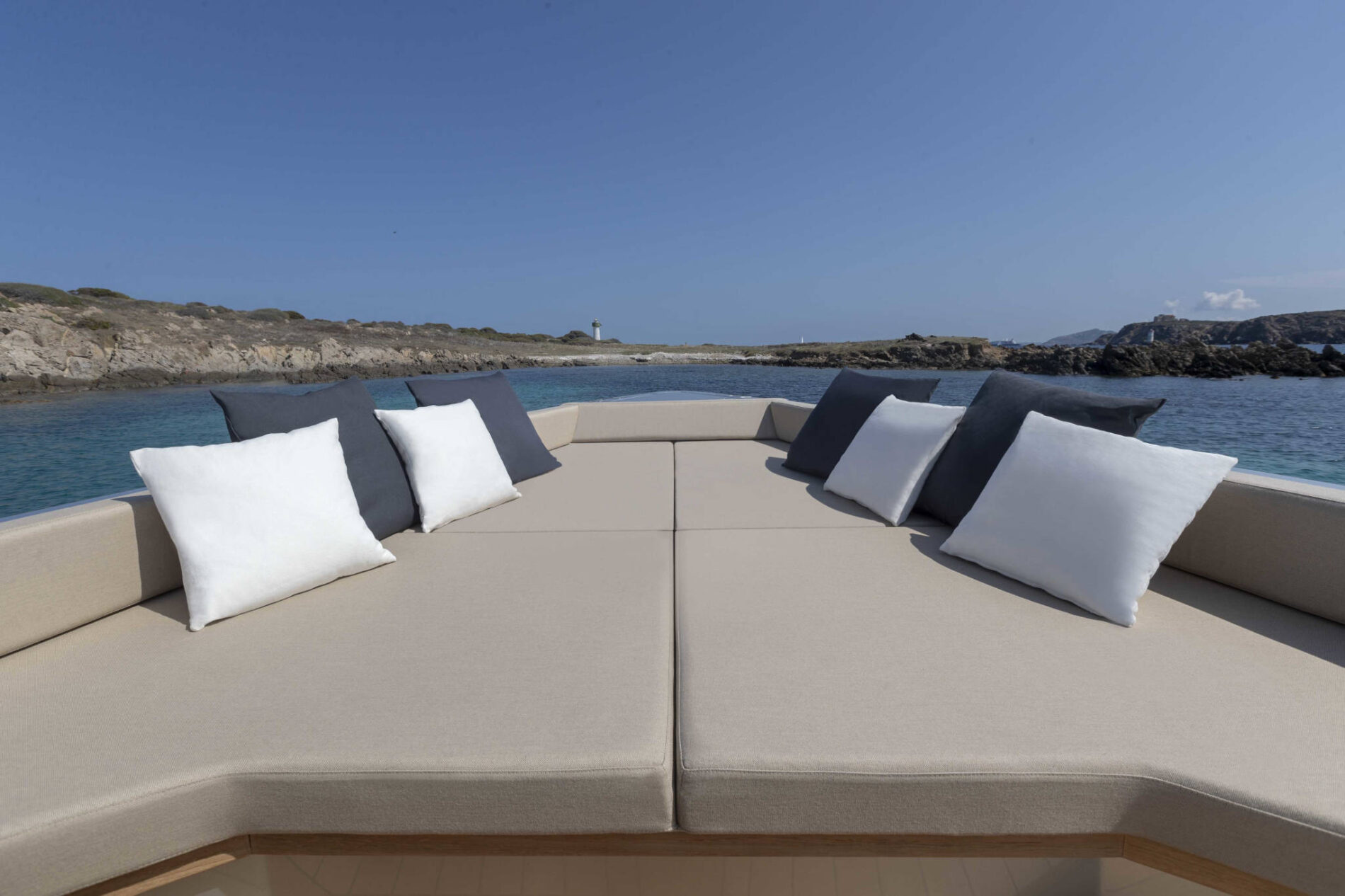 A lavish expanse of flush decking invites guests to indulge themselves on one of the comfy sunpads or seats that run from the forward lounge back to the deep cockpit. Versatile backrests allow you to switch the focus from the dining table and galley unit to the sunpad, while Wally's much-imitated aft wings fold down to maximise the entertaining space.