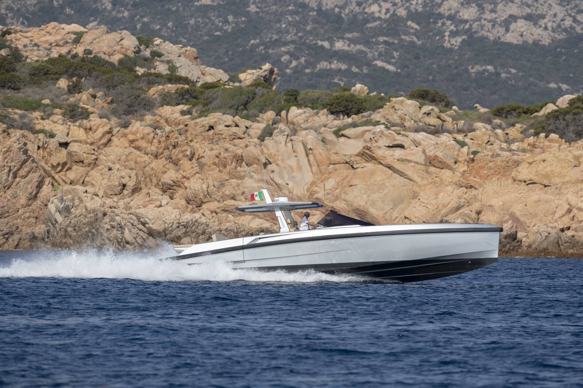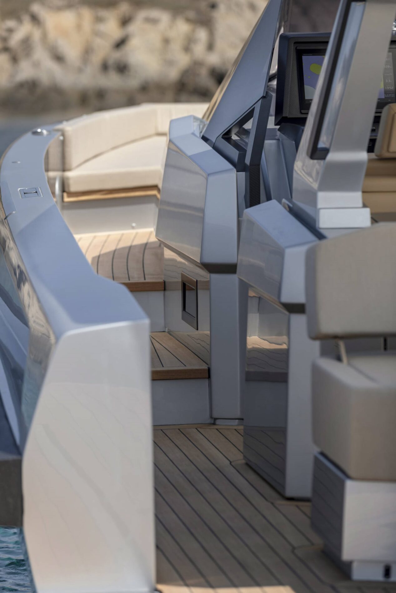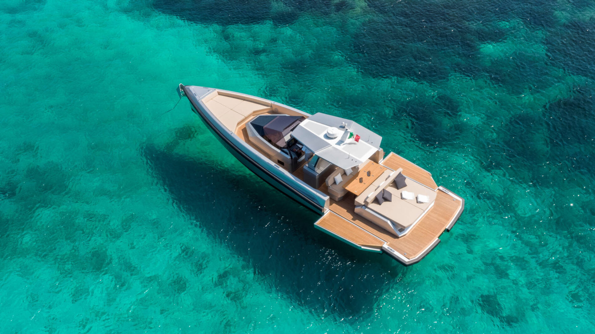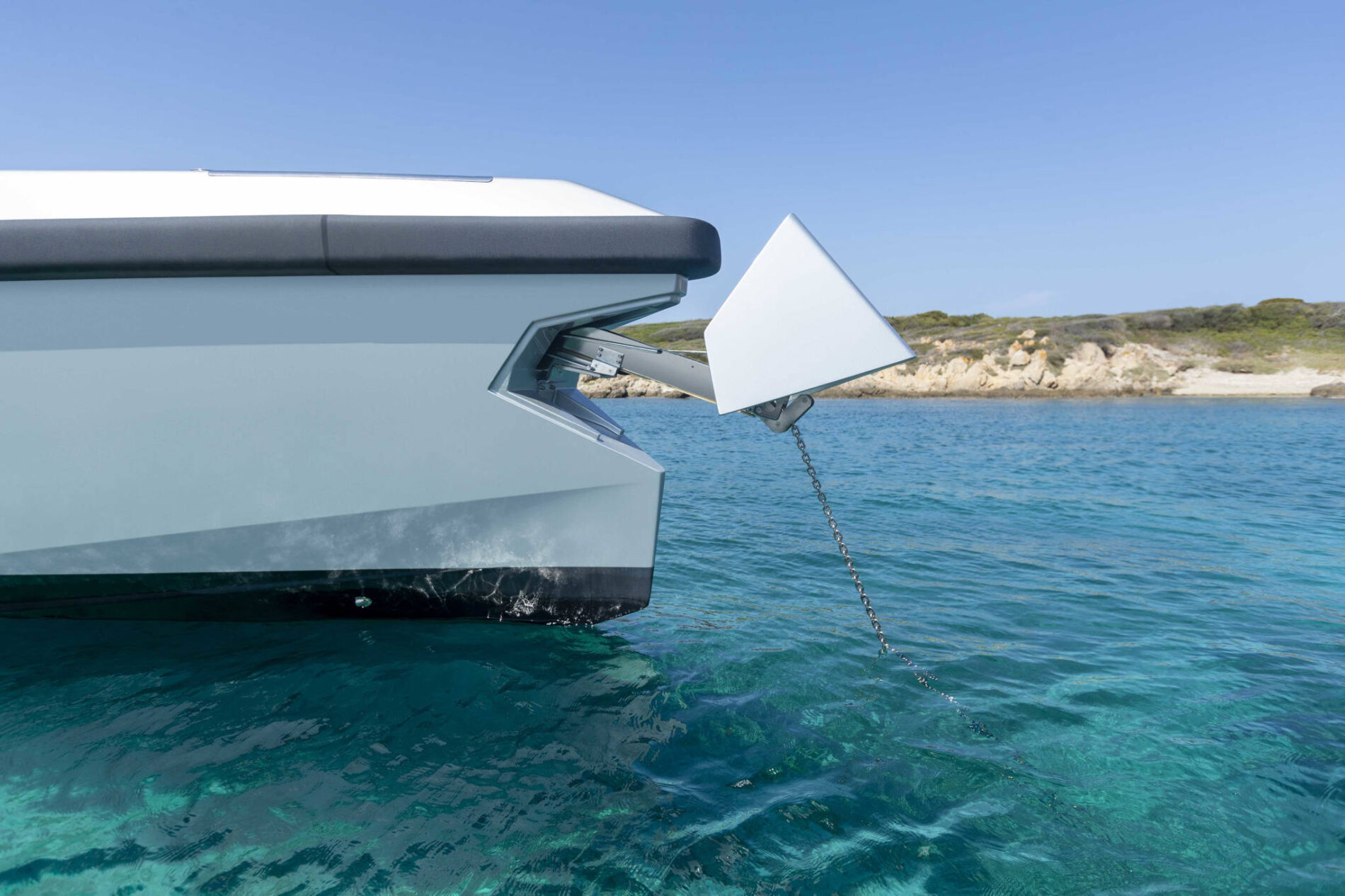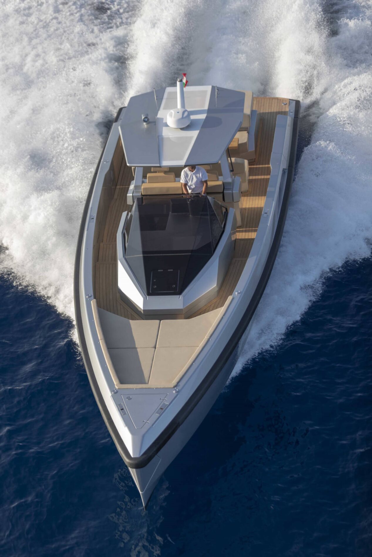 Driving pleasure is second to none. Joystick controls and a wraparound fender system make light of manoeuvring. Meanwhile, twin Volvo Penta IPS 650 drives deliver top speeds of 38 knots and a cruising range of 300nm. All in perfect comfort with minimal slamming, thanks to the vertical bow and automated interceptors.