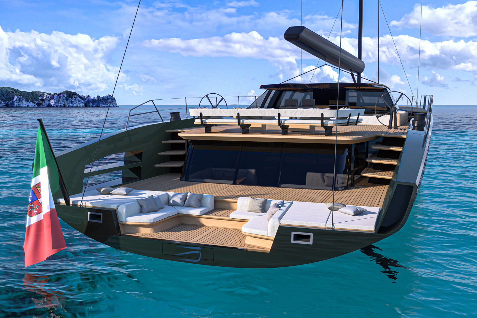 Our sailing flagship is a masterful blend of technology, comfort and style. Like the rest of the range, the wallywind150 is a hybrid of racing pedigree and cruising capabilities. She can win races, turning experienced heads, and carry you in safety and comfort to the far corners of the world’s oceans. But her sheer scale opens up intriguing possibilities which Wally has exploited in its usual innovative fashion.